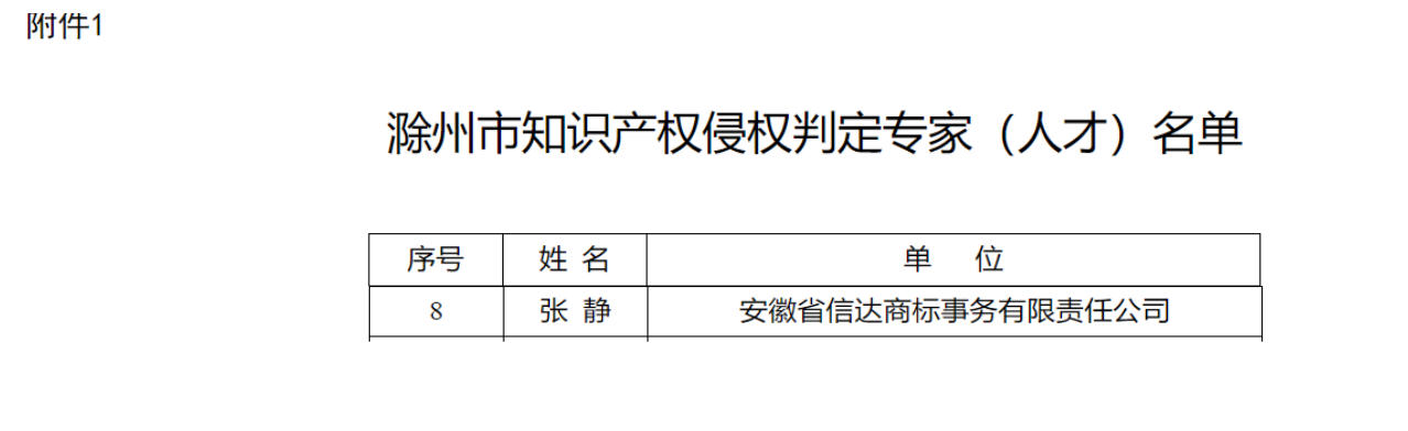 信达张静副总经理 受聘担任滁州市知识产权侵权判定专家