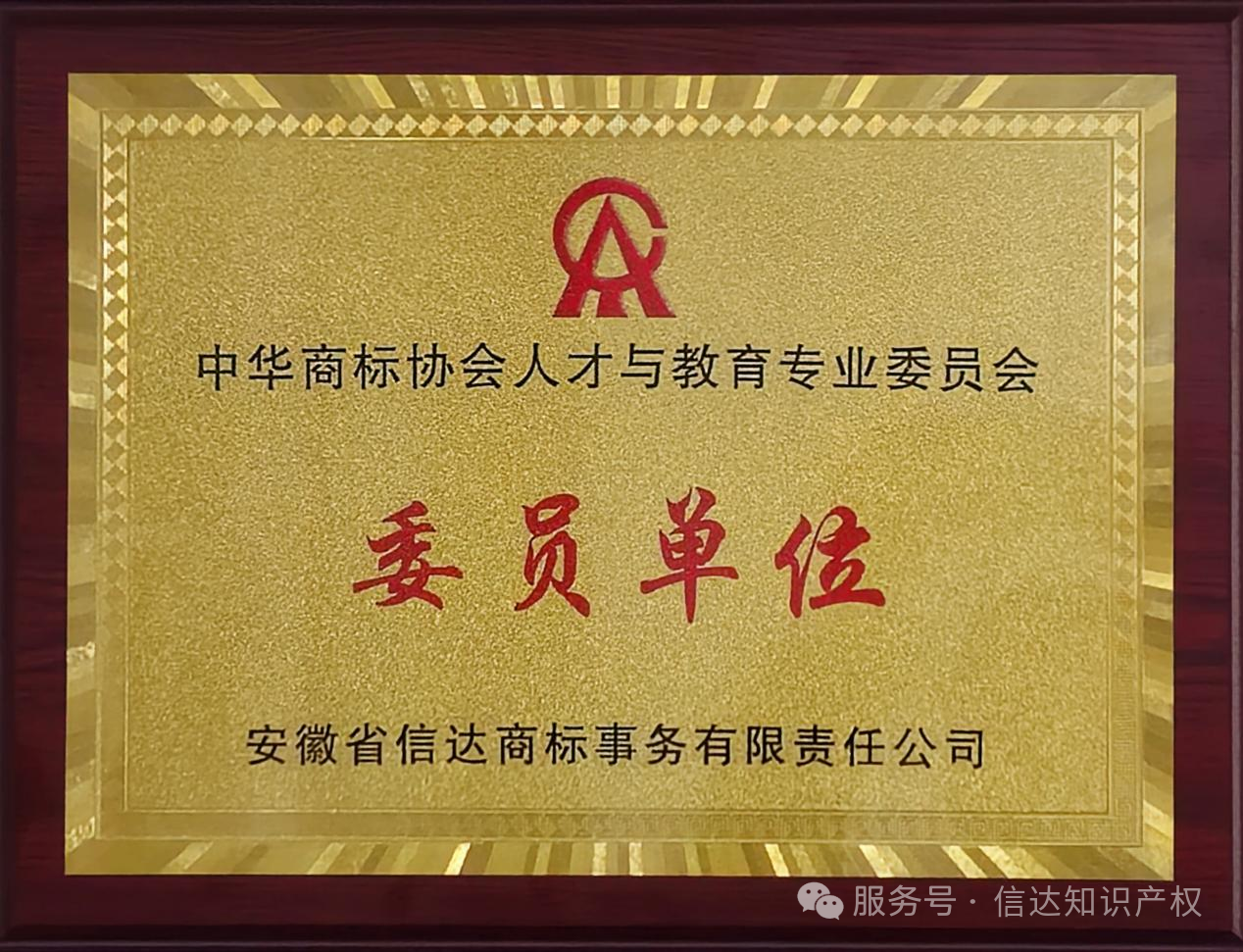 2025年11月21日,中华商标协会发布了“关于调整中华商标协会人才与教育专业委员会成员的通知”,安徽省信达商标事务有限责任公司成为安徽省唯一入选“中华商标协会人才与教育专业委员会委员单位”的代理机构。11月28日,第四届商标品牌人才年会在北京召开,信达商标董事长朱洪涛受邀参加会议,并接受授牌。